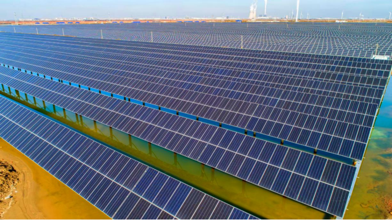 “寿光地处渤海之滨,盐碱滩涂资源丰富,种啥啥不长、给谁谁不要。观念一新,遍地黄金。在‘双碳’目标引领下,寿光创新打造‘光伏发电+新型储能+盐业制卤+水产养殖’等项目融合开发,让盐碱滩涂不毛之地华丽变身,成为乡村振兴的‘香饽饽’。”据潍坊市发展改革委负责人介绍,寿光兴鸿20万千瓦光伏发电项目为“双招双引”项目,位于寿光营里镇,占地5000亩,总投资12亿元,年发电量达3亿千瓦时,可节约标煤9万吨,减排二氧化碳23.4万吨。