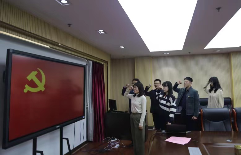天地英雄气,千秋尚凛然。在主题党日活动开始前,有的支部党员自发成为红色故事讲解员,向大家讲述了王尽美、刘谦初、邓恩铭等烈士的英雄事迹。其后,在英雄事迹的感召下,大家共同诵读陈然烈士诗作《我的“自白”书》,共产党员视死如归的英雄气概感染现场,大家慷慨激昂、热泪盈眶。最后,支部党员面对党旗重温入党誓词,坚定信念,不忘初心。